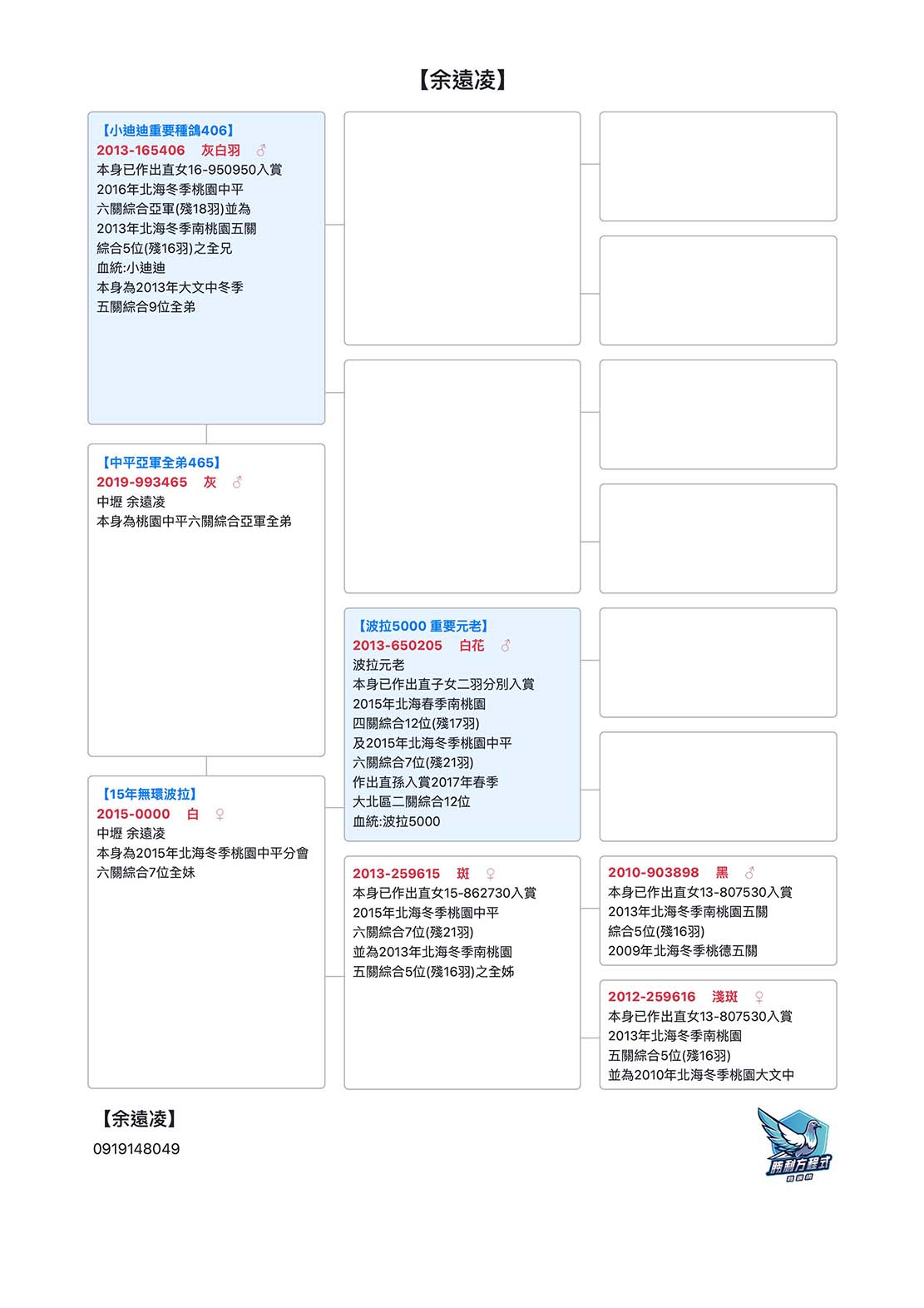 其主血「波拉5000」為最主要基底,輔以長距離名系「小迪迪」、「拿邦號」、「修士肯」造就「花鴿」不敗傳說。