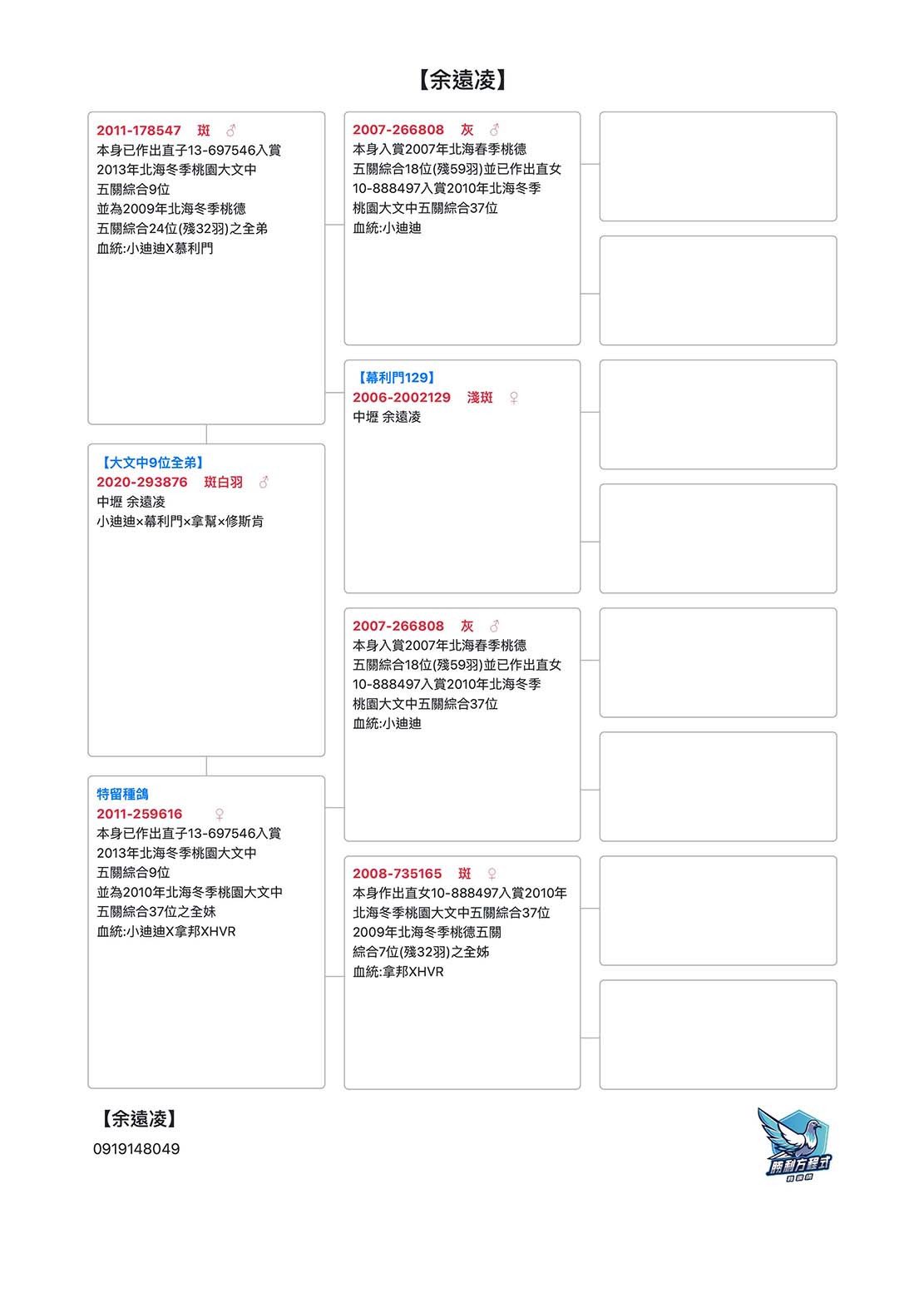 ◎母親:2011-259616 ♀|血統:小迪迪×拿邦×HVR|特留種鴿