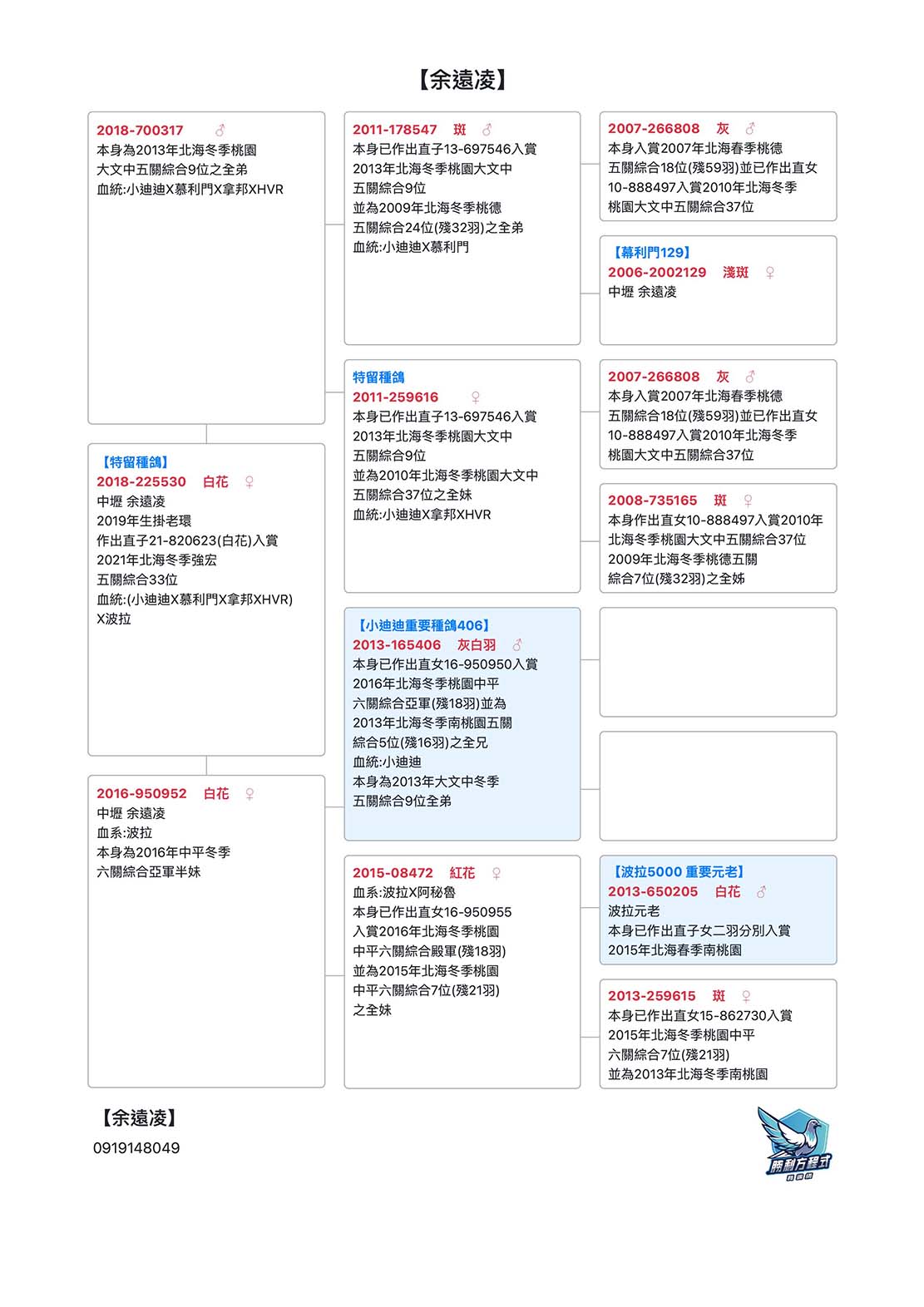 其主血「波拉5000」為最主要基底,輔以長距離名系「小迪迪」、「拿邦號」、「修士肯」造就「花鴿」不敗傳說。