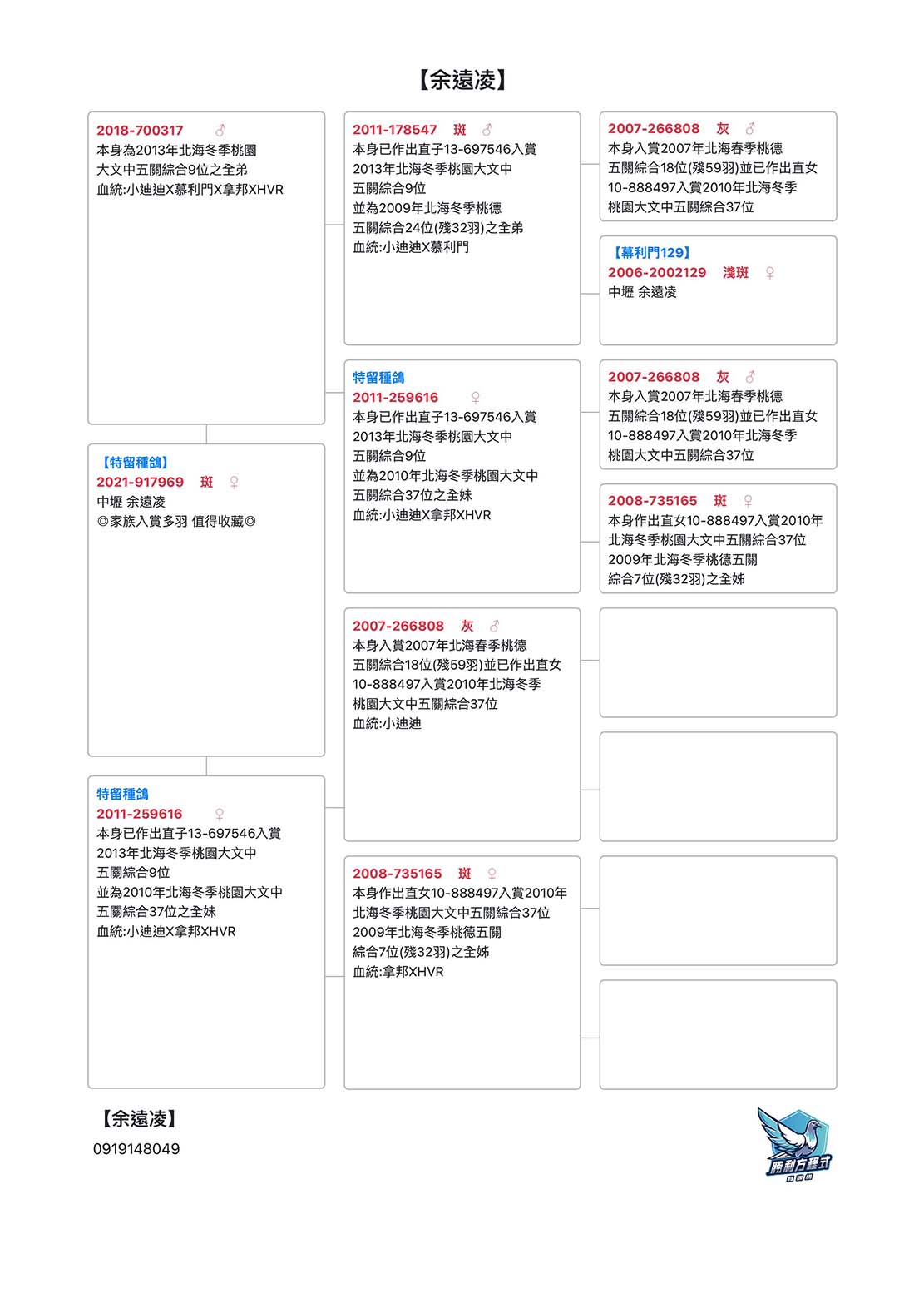 【特留種鴿】 ◎家族入賞多羽
