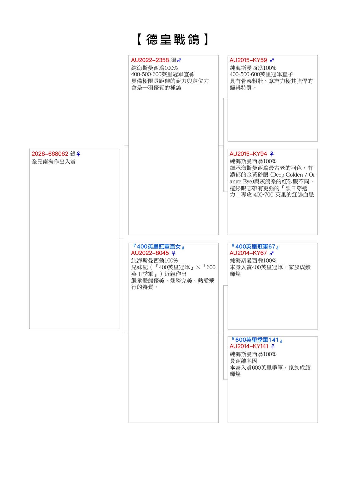 ◎母親:AU2022-8045 ♀ 【400英里冠軍直女】