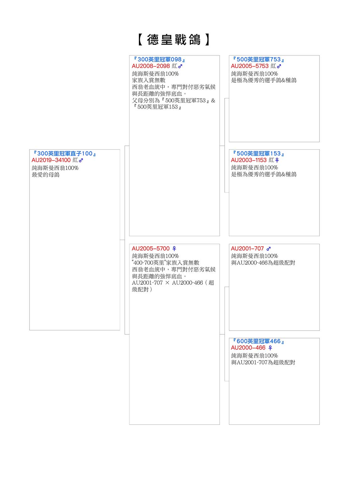◎父親:AU2008-2098 紅♂ 【300英里冠軍098】