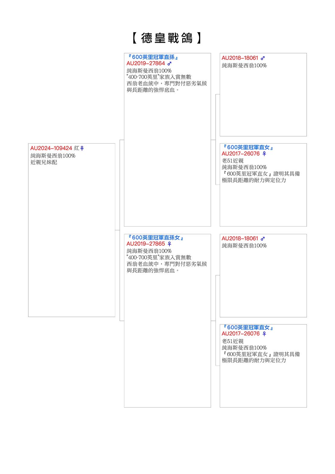 ◎父親:AU2019-27864 ♂ 【600英里冠軍直孫】