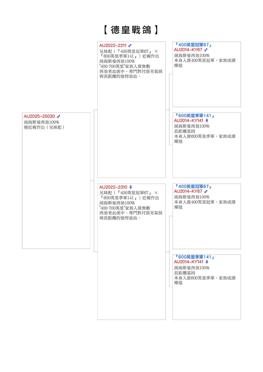 (『400英里冠軍67』 × 『600英里季軍141』)近親作出