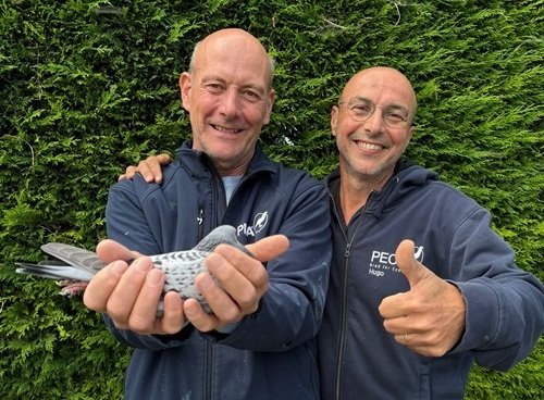 在22:25最後一次檢查ZLU網站後,雨果發現荷蘭境內沒有鴿子。考慮到還有60公里的飛行距離,他們決定停止等鴿,按時睡覺。這樣他們第二天早上就可以早起開始等待。雨果從臥室窗戶做了最後一次檢查…發現一羽鴿子。你可以想像,這時爆發了恐慌。他們竭盡所能要把這羽「灰夜2號」(Blue Night II)雌鴿帶進鴿舍。然而,她非常緊張,一次又一次地飛起來。總共花了大約半小時才把她引回鴿舍。一切恢復平靜後,下一個驚喜出現了。那時雨果已經回到屋內,兒子佑特(Jort)在晚上11點10分做最後的檢查。突然間他聽到身後又有一羽鴿子降落,而這正是那羽超級一歲鴿「暗夜公主」。佑特迅速跑進屋內喊道:「又有一羽鴿子。」因此,佑特也體驗了一次雨果當晚早些時候經歷的那一刻。