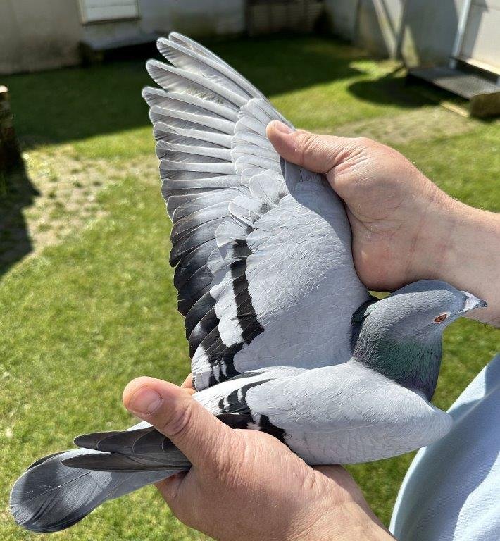 第2羽歸巢鴿「卡迪莎」(Cadisha BE22-6033008)無疑是一羽超級雌鴿。她作為幼鴿已經獲得亞精頓全國13393羽5位(全國大區冠軍)。作為一歲鴿她獲得查特路全國13096羽77位。