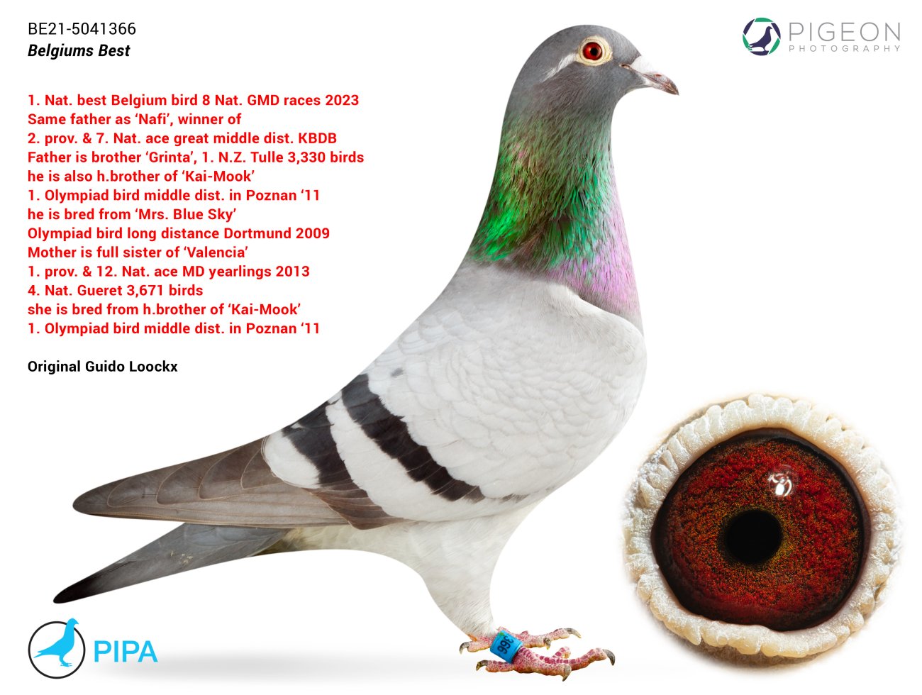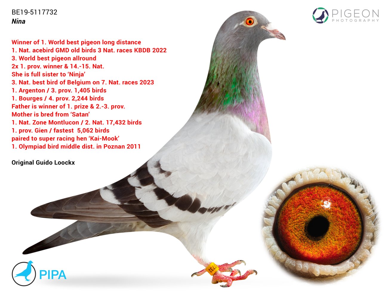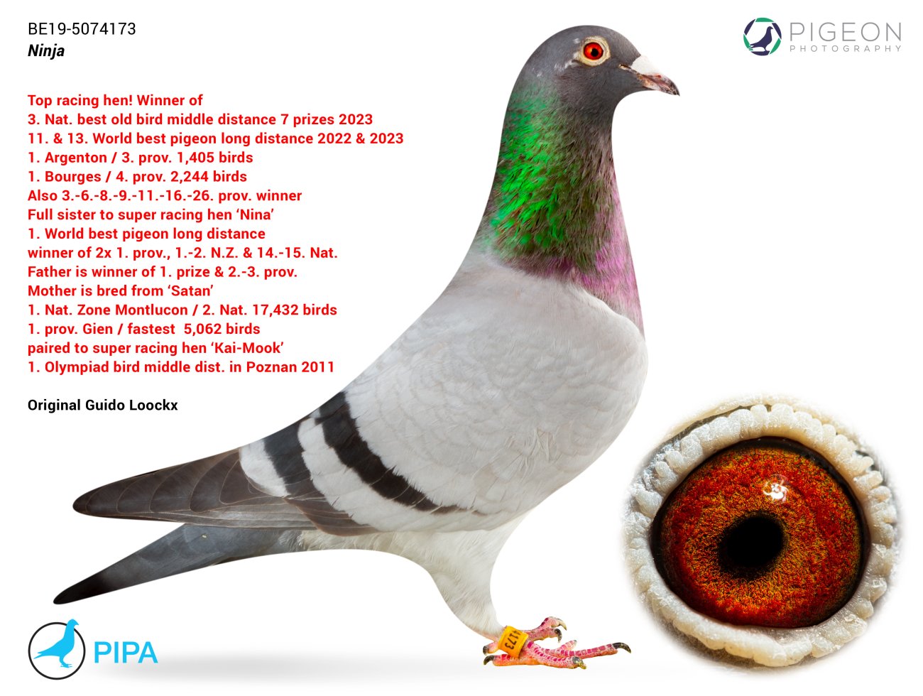 仔細看過上面的血統書後,很明顯吉多.盧克斯的育種策略以及他對“潘塔尼”基因的保存都得到了回報。這對於「妮娜」和「忍者」來說更加明顯。 「潘塔尼」在這些超級鴿的血統書中出現了4次。 2023年「忍者」(Ninja, BE19-5074173)的表現同樣出色,與姊姊「妮娜」不相上下。她獲得: