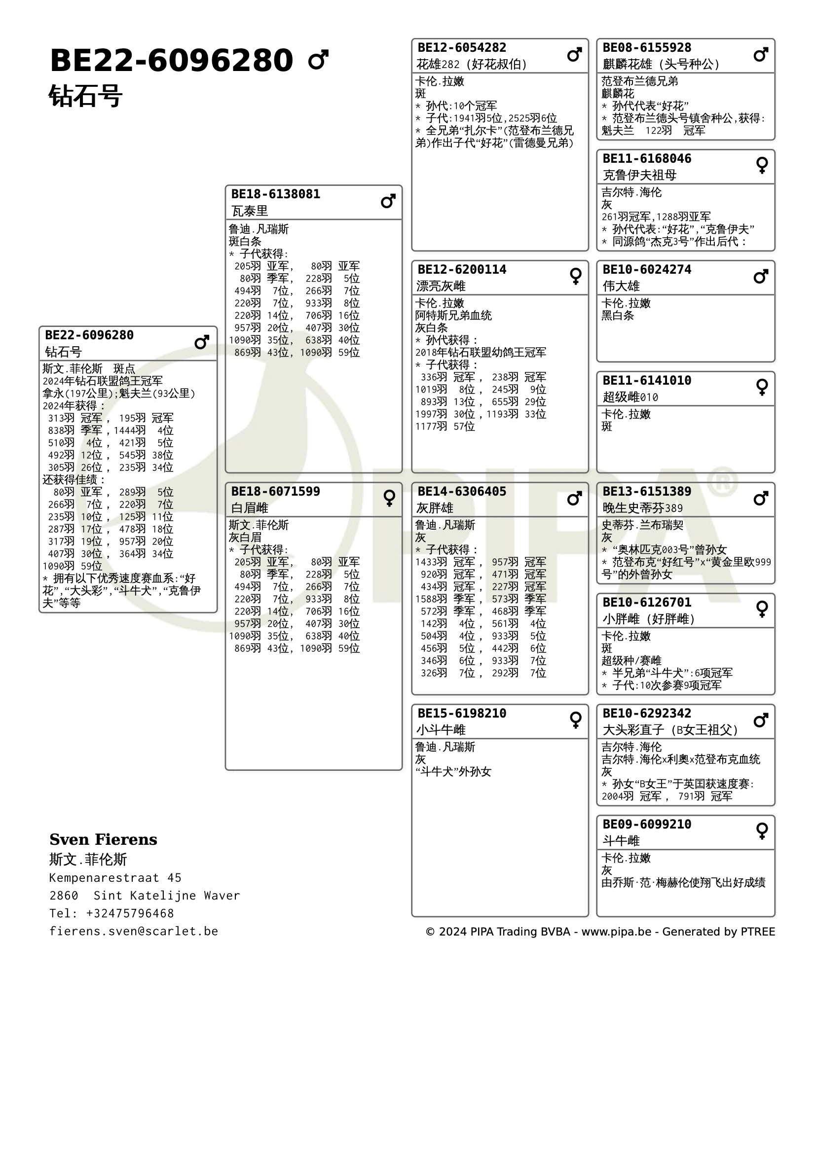 他的兄弟「年輕鑽石號」(Jonge Diamant BE23-6040113)也表現出色,他是斯文.費倫斯獲得鑽石聯盟拿永成鴿和一歲鴿最佳鴿舍的功臣。