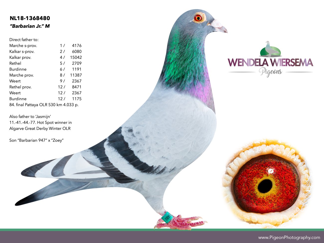 幾乎全白羽色的「野蠻人費恩078」打鐘時間僅比「最佳基特爾斯提比」晚2秒,因此獲得第1-3聯合會6080羽亞軍。 9次參賽中,「野蠻人費恩078」獲得不少於8項入賞。這羽年輕雄鴿是「小野蠻人」(NL18-1368480 Barbarian Jr.)的直子,「小野蠻人」成為一羽超級種鴿。他也作育子代獲得2023年全國青年女鴿友鴿王10位、馬爾什4176羽冠軍、卡爾卡6080羽亞軍和雷特爾817羽亞軍。 「野蠻人費恩078」的母親「費恩直女」(BE21-4201937 Daughter Finn)出自湯姆.凡哈佛的頂級種鴿「費恩」。