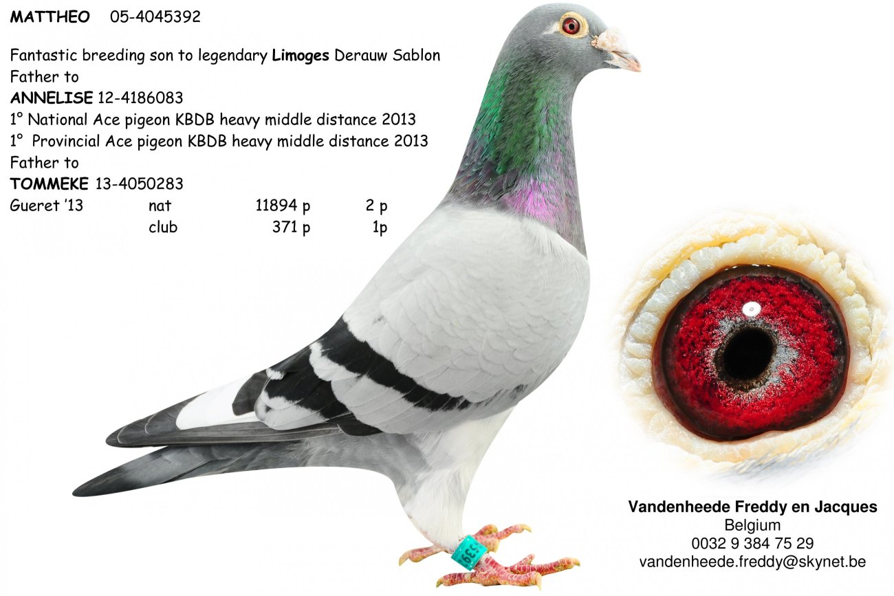 范希兄弟在過去十年內取得的成績幾乎是接近不可能的。他們在自己鴿舍經常能夠取得優異的成績,從而帶來了無數頭銜、全國鴿王和比利時綜合最佳鴿舍頭銜。憑藉著基礎鴿「馬提奧」及其後代,這對兄弟的光明未來值得期待!
