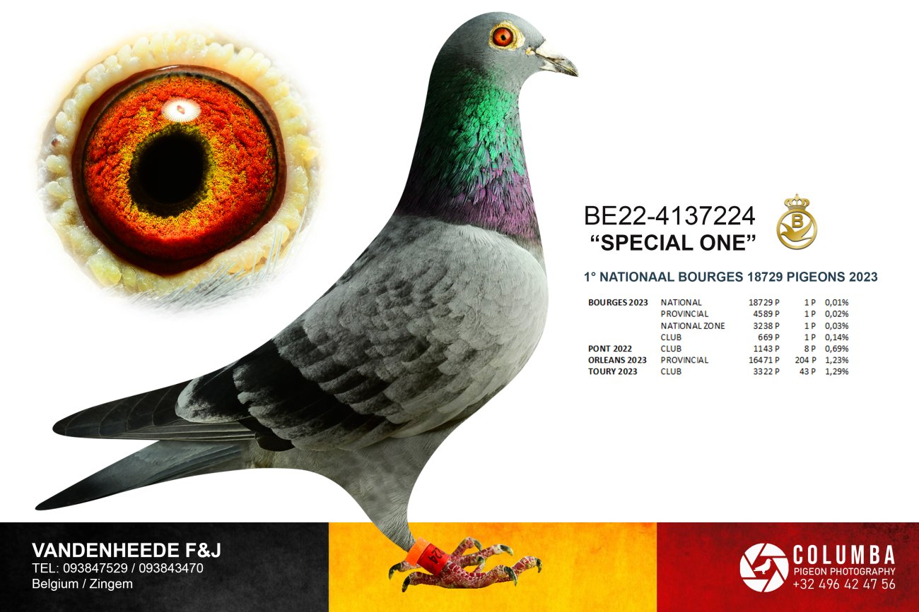 除了成鴿冠軍外,福雷迪和雅克還以「特殊的一個」(Special One, BE22-4137224)獲得波治全國一歲鴿冠軍。 「特殊的一個」也是「馬提奧」的直孫,他獲得波治I全國18,729羽冠軍。