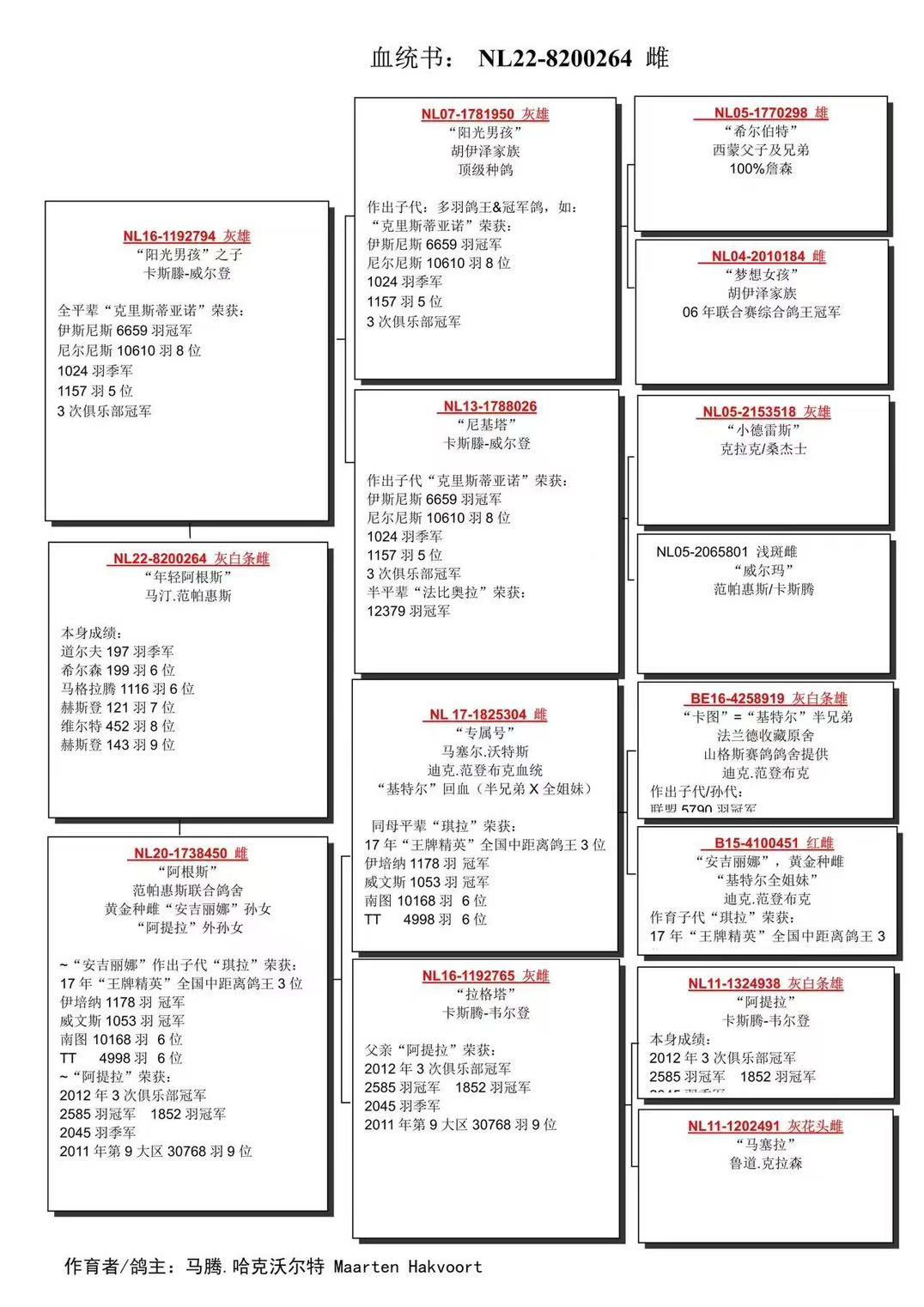 • 紀錄:子代獲伊培納 6659 羽冠軍、尼爾尼斯 10610 羽 8 位。半平輩「法比奧拉」獲 12379 羽冠軍。